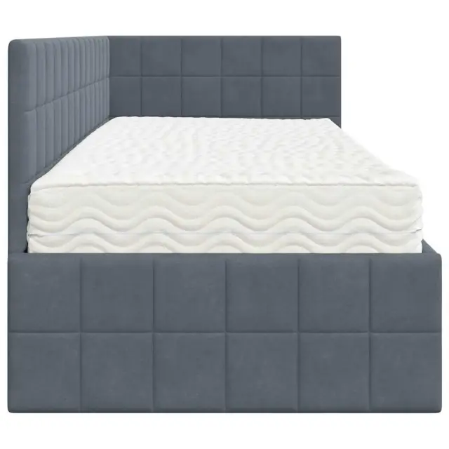 Ta kotna postelja z žametno vzmetnico je pravi simbol sodobne elegance, zasnovana da se brez težav prilega vsakemu prostoru. Njena pravokotna oblika in žametna tekstura prinašata sofisticiranost in udobje. Ta platformna postelja ponuja moderni estetski občutek, hkrati pa nudi trdna podlago za sproščujoče spanje. Predstavljaj si, kako se potopiš v luksuzno srednje trdo vzmetnico, ki se prilagodi vsem spalnim položajem, kar zagotavlja mirne noči in sveža jutra. Vzglavnik prihrani prostor ter izboljša preprost dizajn, kar ustvarja svetišče za počitek.