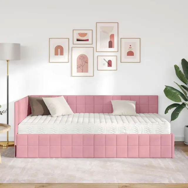 Ta kotna postelja z žametno vzmetnico je pravi simbol sodobne elegance, zasnovana da se brez težav prilega vsakemu prostoru. Njena pravokotna oblika in žametna tekstura prinašata sofisticiranost in udobje. Ta platformna postelja ponuja moderni estetski občutek, hkrati pa nudi trdna podlago za sproščujoče spanje. Predstavljaj si, kako se potopiš v luksuzno srednje trdo vzmetnico, ki se prilagodi vsem spalnim položajem, kar zagotavlja mirne noči in sveža jutra. Vzglavnik prihrani prostor ter izboljša preprost dizajn, kar ustvarja svetišče za počitek.