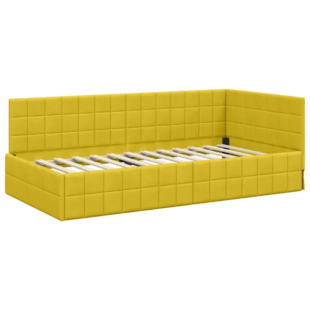 vidaXL Kotni okvir postelje z matrico z vzglavjem 2 pcs Rumena Žamet