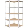 Ta trpežen kotni regal je odlična izbira tako za stanovanjsko kot komercialno rabo, saj zagotavlja veliko prostora za organizirano shranjevanje predmetov.