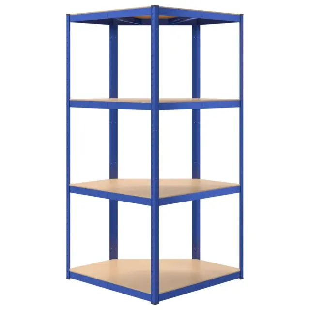 vidaXL Kotni regal s policami 4-nadstropni modro jeklo in inženir. les