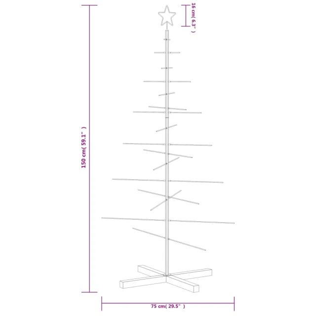 vidaXL Kovinska novoletna jelka z lesenim podstavkom črna 150 cm