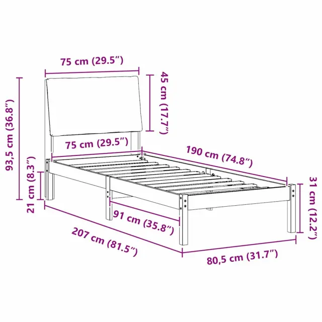vidaXL Kovinska posteljna konstrukcija Rjava in črna 75 x 190 cm