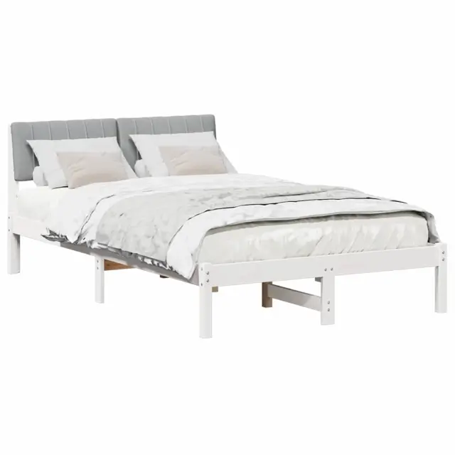 vidaXL Kovinska posteljna konstrukcija z vzglavjem Bela in svetlo siva