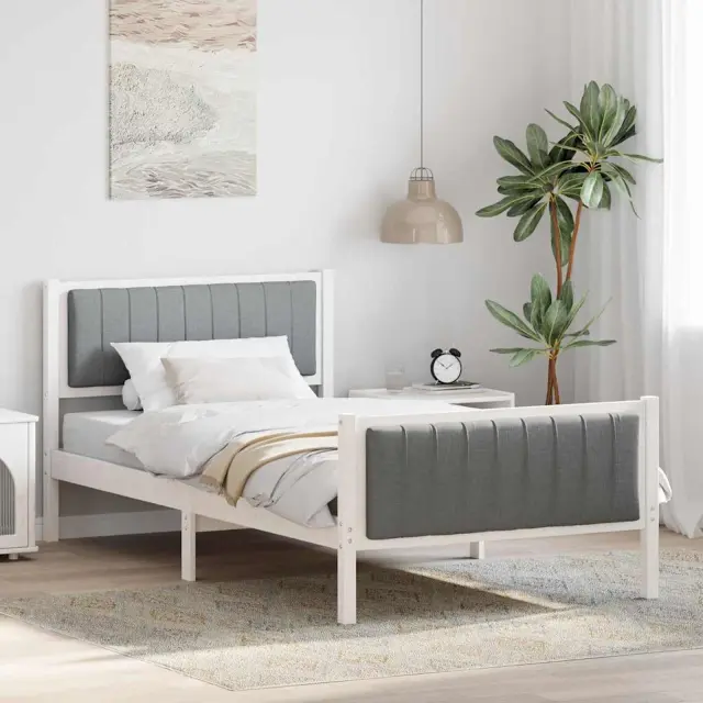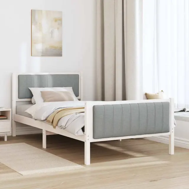 vidaXL Kovinska posteljna konstrukcija z vzglavjem Bela in svetlo siva