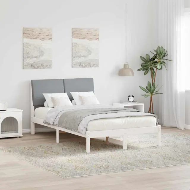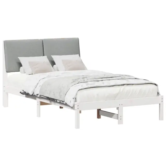 vidaXL Kovinska posteljna konstrukcija z vzglavjem Bela in svetlo siva