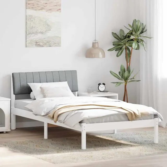 vidaXL Kovinska posteljna konstrukcija z vzglavjem Bela in svetlo siva