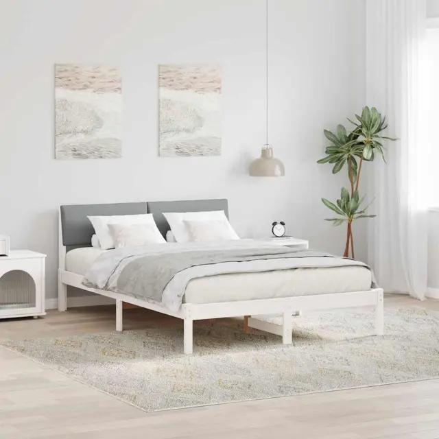 vidaXL Kovinska posteljna konstrukcija z vzglavjem Bela in svetlo siva