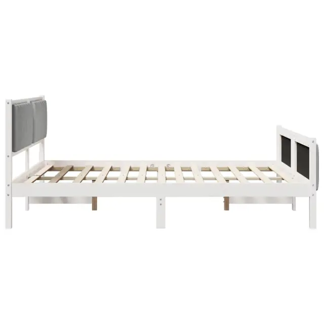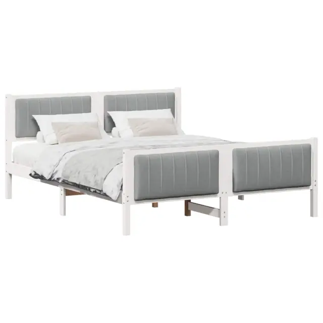 vidaXL Kovinska posteljna konstrukcija z vzglavjem Bela in svetlo siva