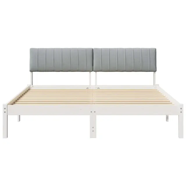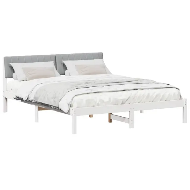vidaXL Kovinska posteljna konstrukcija z vzglavjem Bela in svetlo siva
