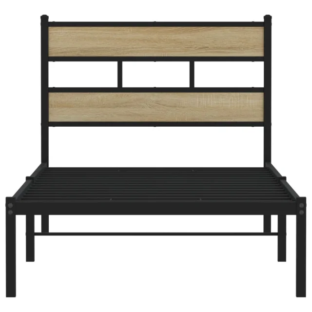 vidaXL Kovinski posteljni okvir brez vzmetnice sonoma hrast 100x200 cm