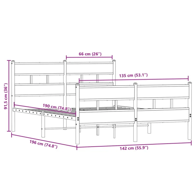 vidaXL Kovinski posteljni okvir brez vzmetnice sonoma hrast 135x190 cm