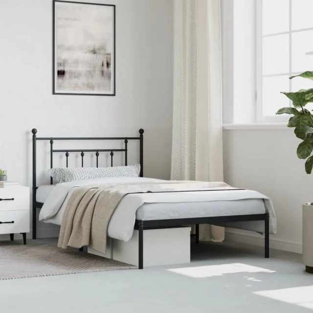 vidaXL Kovinski posteljni okvir z vzglavjem črn 100x200 cm
