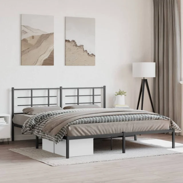 vidaXL Kovinski posteljni okvir z vzglavjem črn 180x200 cm
