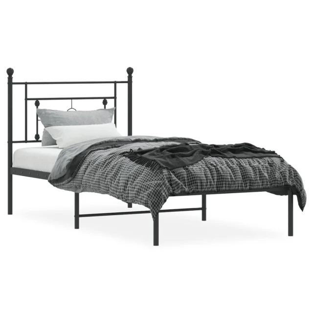 vidaXL Kovinski posteljni okvir z vzglavjem črn 90x190 cm