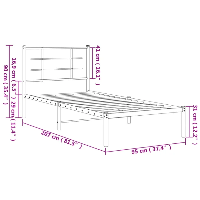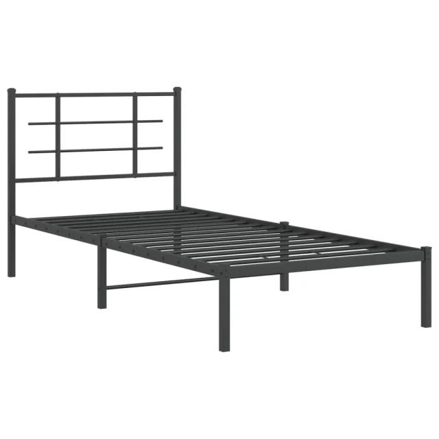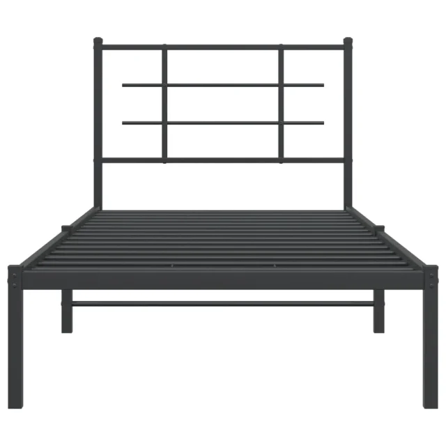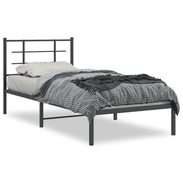 vidaXL Kovinski posteljni okvir z vzglavjem črn 90x200 cm