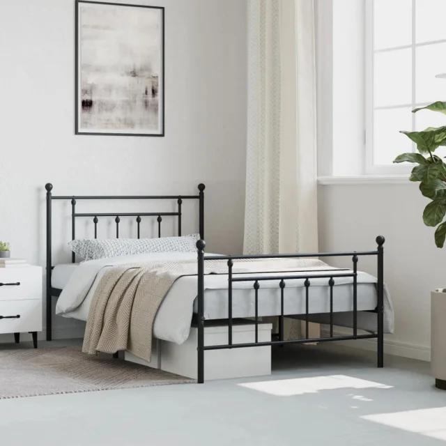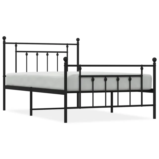 vidaXL Kovinski posteljni okvir z vzglavjem in vznožjem črn 100x200 cm