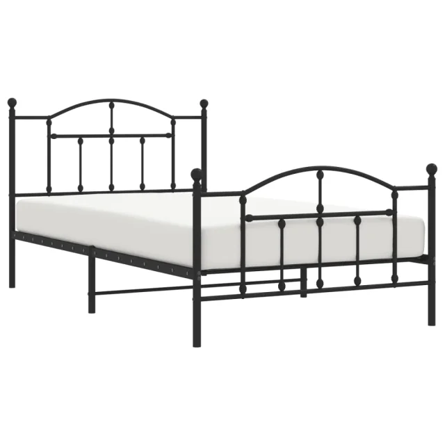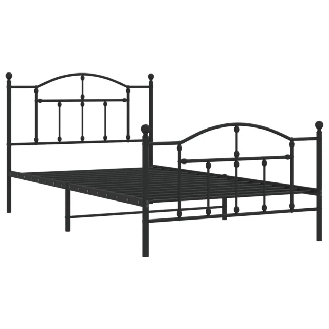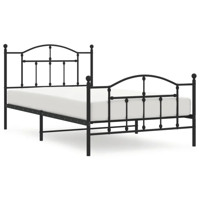 vidaXL Kovinski posteljni okvir z vzglavjem in vznožjem črn 100x200 cm