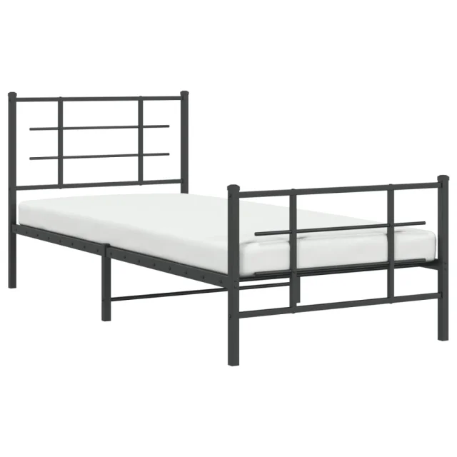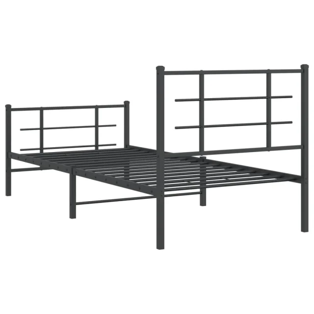 vidaXL Kovinski posteljni okvir z vzglavjem in vznožjem črn 90x200 cm