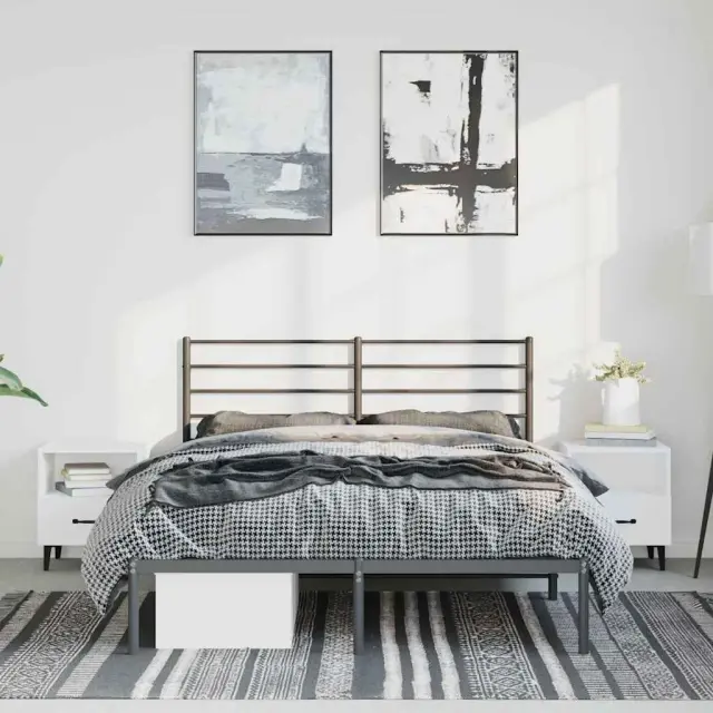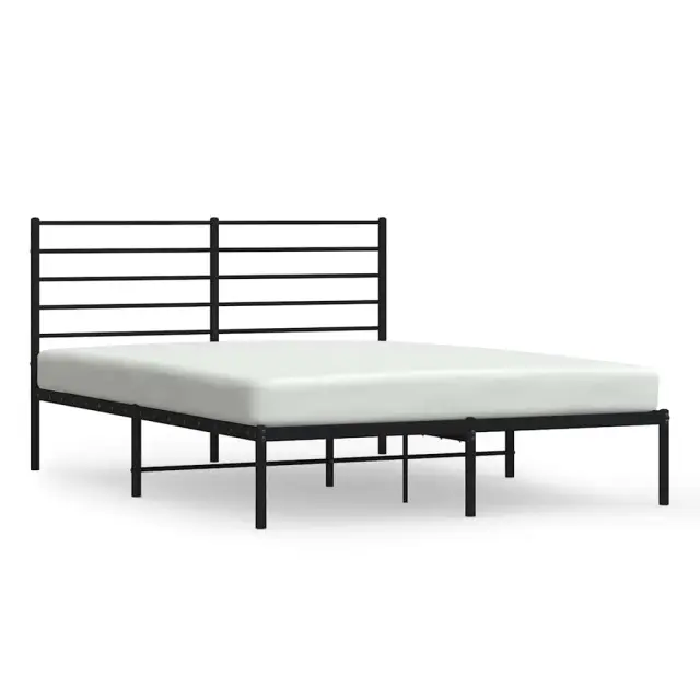 vidaXL Kovinski posteljni okvir z vzglavjem črn 150x200 cm