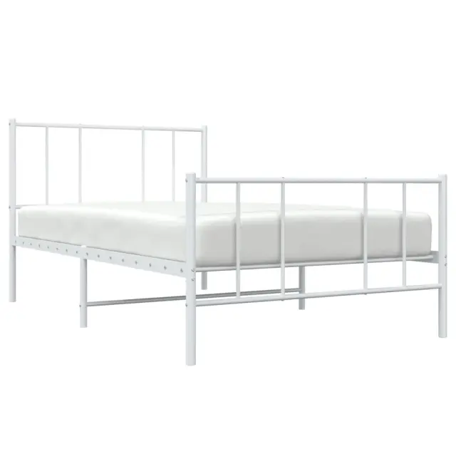 vidaXL Kovinski posteljni okvir z vzglavjem in vznožjem bel 75x190 cm