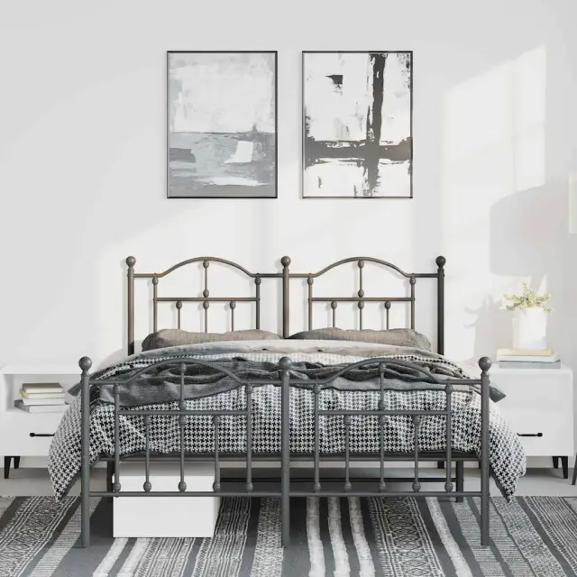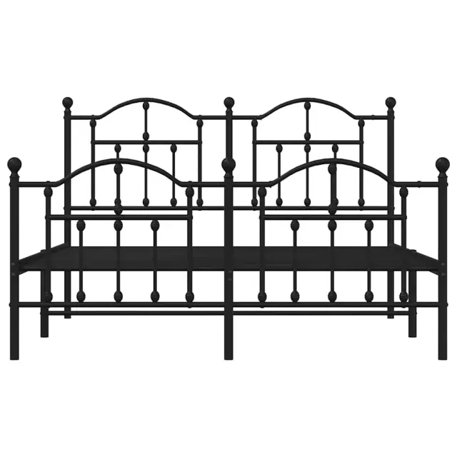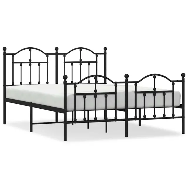 vidaXL Kovinski posteljni okvir z vzglavjem in vznožjem črn 135x190 cm