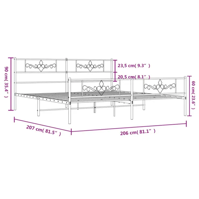 Če iščete trpežen posteljni okvir za svojo spalnico, je ta klasični posteljni okvir z elegantnim in brezčasnim dizajnom popolna izbira! Robustna kovinska konstrukcija: Okvir postelje je izdelan iz prašno barvanega jekla. Jeklo je izjemno trd in močan material, ki zagotavlja izjemno trdnost in stabilnost.Kovinske letvice in noge: Kovinski posteljni okvir je opremljen s kovinskimi letvami in sredinskimi nogami, ki ležišču nudijo nujno potrebno oporo in zračnost.Dodaten prostor za shranjevanje: Za vaše udobje ima postelja za goste pod seboj tudi dodaten prostor, da vaše škatle za shranjevanje ne bodo vidne.Funkcionalno vzglavje in podnožje: Vzglavje in podnožje posteljnega dna ohranjata ležišče na mestu. Poleg tega vzglavje zagotavlja odlično oporo hrbtu, ko sedite v postelji in berete ali gledate televizijo. Dobro je vedeti:Vzmetnica ni priložena tej postelji. Ponujamo različno izbiro ležišč. V naši trgovini si lahko ogledate ustrezne vzmetnice.Barva: BelaMaterial: JekloCelotne dimenzije: 207 x 206 x 90 cm (D x Š x V)Višina prostora pod posteljo: 30 cmVelikost primerne vzmetnice: 200 x 200 cm (Š x D) (vzmetnica ni priložena)Potrebno sestavljanje: Da 355341