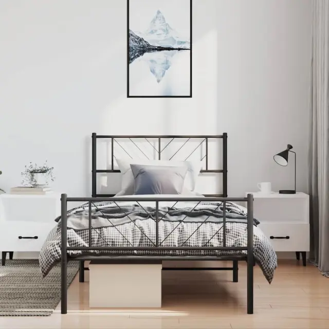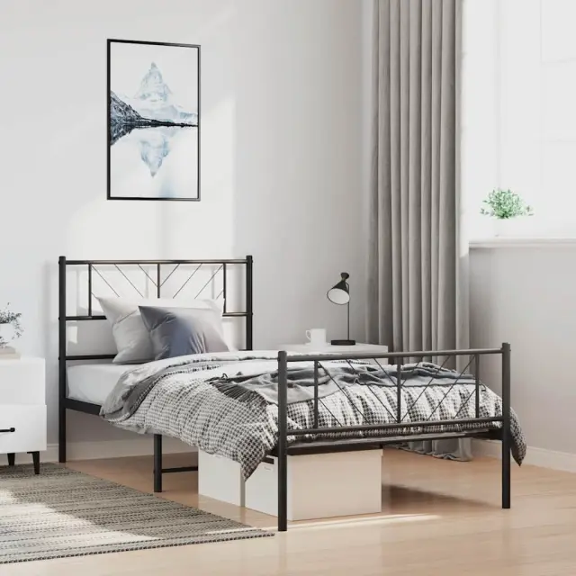 vidaXL Kovinski posteljni okvir z vzglavjem in vznožjem črn 100x190 cm