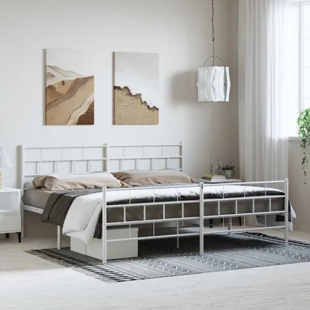 Če iščete trpežen posteljni okvir za svojo spalnico, je ta klasični kovinski posteljni okvir z elegantnim in brezčasnim dizajnom popolna izbira! Robustna kovinska konstrukcija: Okvir postelje je izdelan iz prašno barvanega jekla. Jeklo je izjemno trd in močan material, ki zagotavlja izjemno trdnost in stabilnost.Kovinske letvice in noge: Kovinska postelja je opremljena s kovinskimi letvami in sredinskimi nogami, ki ležišču nudijo nujno potrebno oporo in zračnost.Dodaten prostor za shranjevanje: Za vaše udobje ima postelja za goste pod seboj tudi dodaten prostor, da vaše škatle za shranjevanje ne bodo vidne.Funkcionalno vzglavje in podnožje: Vzglavje in podnožje posteljnega dna ohranjata ležišče na mestu. Poleg tega vzglavje zagotavlja odlično oporo hrbtu, ko sedite v postelji in berete ali gledate televizijo. Dobro je vedeti:Vzmetnica ni priložena tej postelji. Ponujamo različno izbiro ležišč. V naši trgovini si lahko ogledate ustrezne vzmetnice. Barva: Bela Material: Jeklo Celotne dimenzije: 207 x 198 x 90 cm (D x Š x V)Višina prostora pod posteljo: 26 cmPrimerna velikost vzmetnice: 193 x 203 cm (Š x D) (vzmetnica ni priložena)Potrebno sestavljanje: Da 355732