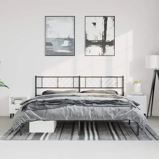 Če iščete trpežen posteljni okvir za svojo spalnico, je ta klasični kovinski posteljni okvir z elegantnim in brezčasnim dizajnom popolna izbira! Robustna kovinska konstrukcija: Okvir postelje je izdelan iz prašno barvanega jekla. Jeklo je izjemno trd in močan material, ki zagotavlja izjemno trdnost in stabilnost.Kovinske letvice in noge: Kovinska postelja je opremljena s kovinskimi letvami in sredinskimi nogami, ki ležišču nudijo nujno potrebno oporo in zračnost.Dodaten prostor za shranjevanje: Za vaše udobje ima postelja za goste pod seboj tudi dodaten prostor, da vaše škatle za shranjevanje ne bodo vidne.Odlična opora: Vzglavje zagotavlja odlično oporo hrbtu, ko sedite v postelji in berete ali gledate televizijo. Dobro je vedeti:Vzmetnica ni priložena tej postelji. Ponujamo različno izbiro ležišč. V naši trgovini si lahko ogledate ustrezne vzmetnice. Barva: Črna Material: Jeklo Celotne dimenzije: 219 x 187 x 90 cm (D x Š x V)Višina prostora pod posteljo: 26 cmVelikost primerne vzmetnice: 183 x 213 cm (Š x D) (vzmetnica ni priložena)Potrebno sestavljanje: Da 372184
