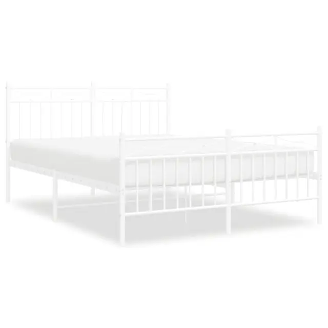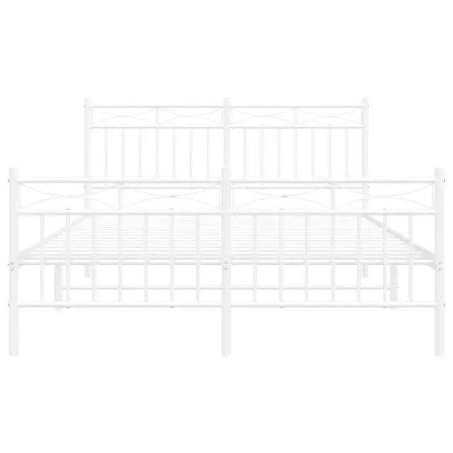 vidaXL Kovinski posteljni okvir z vzglavjem in vznožjem bel 135x190 cm
