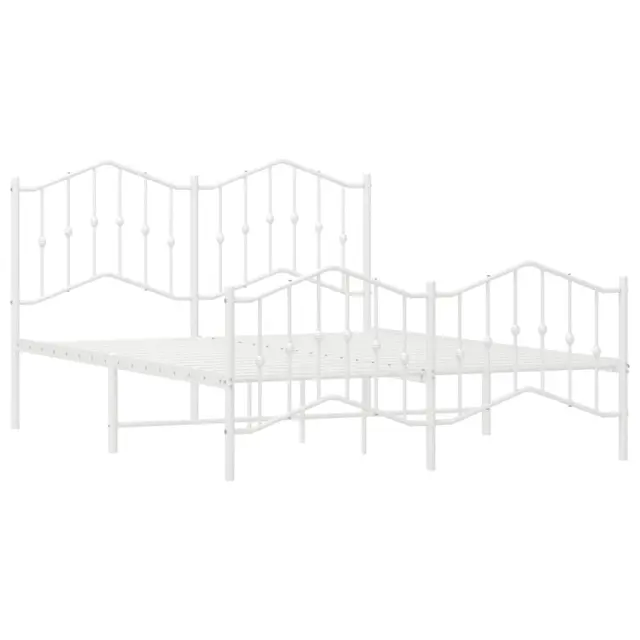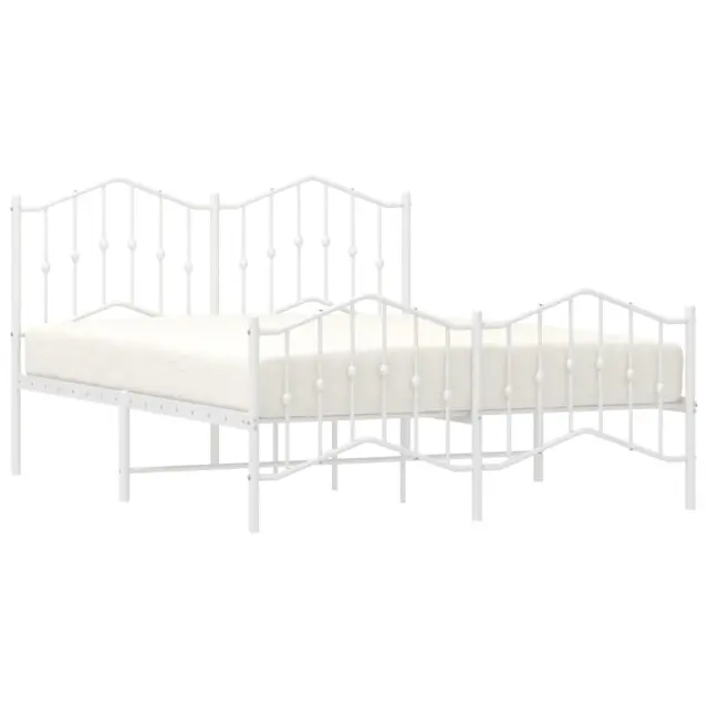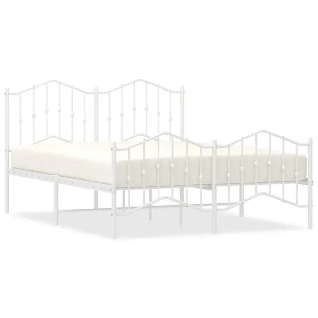 vidaXL Kovinski posteljni okvir z vzglavjem in vznožjem bel 135x190 cm