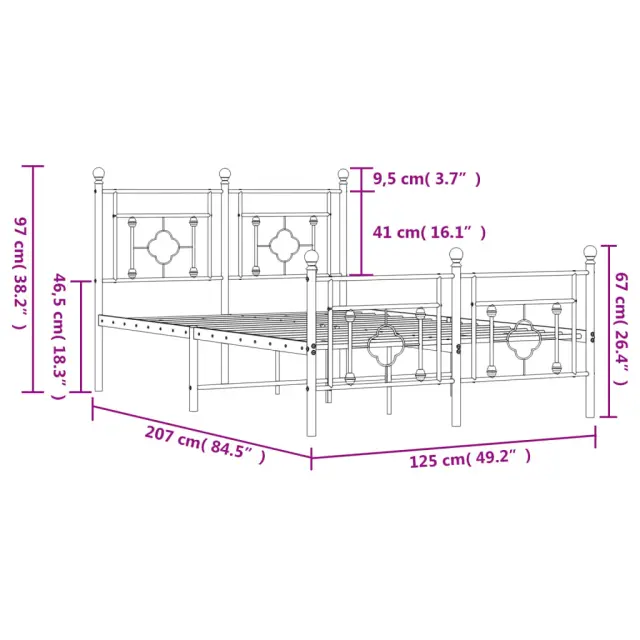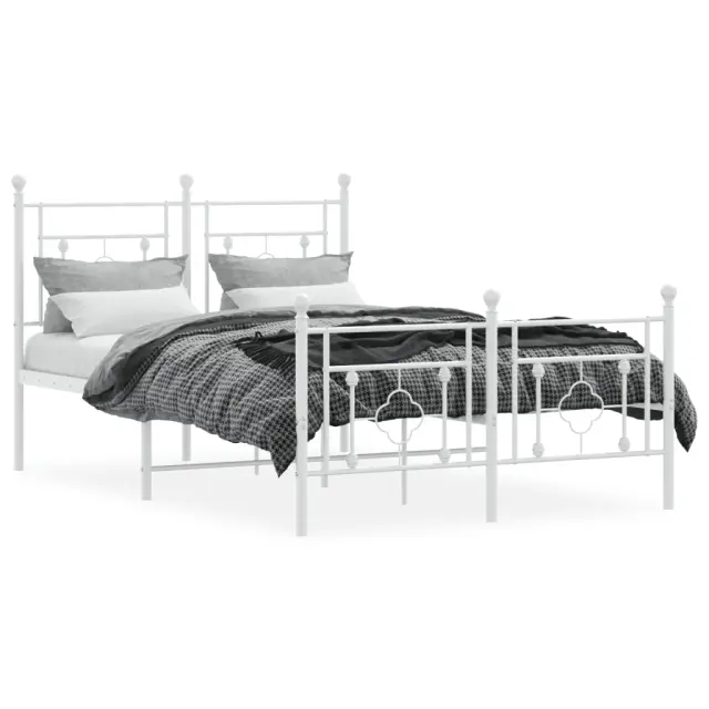 vidaXL Kovinski posteljni okvir z vzglavjem in vznožjem bel 120x200 cm