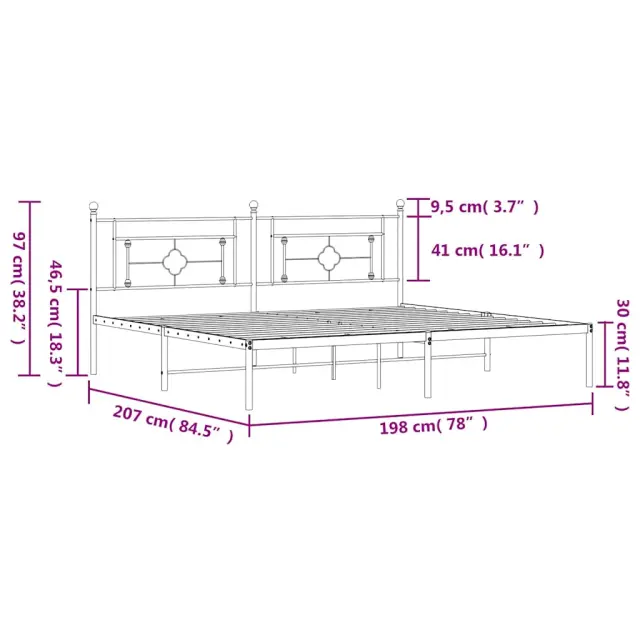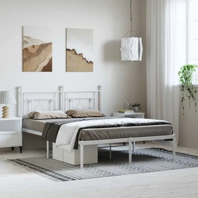 vidaXL Kovinski posteljni okvir z vzglavjem bel 193x203 cm