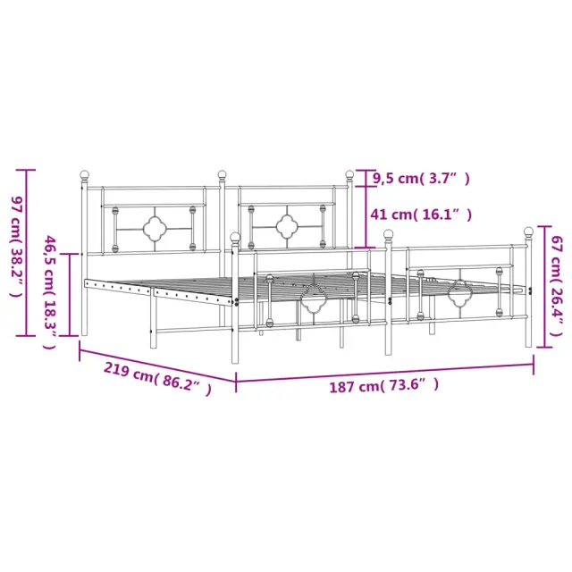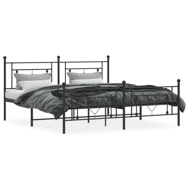 Če iščete trpežen posteljni okvir za svojo spalnico, je ta klasični posteljni okvir z elegantnim in brezčasnim dizajnom popolna izbira! Robustna kovinska konstrukcija: Okvir postelje je izdelan iz prašno barvanega jekla. Jeklo je izjemno trd in močan material, ki zagotavlja izjemno trdnost in stabilnost.Kovinske letvice in noge: Kovinski posteljni okvir je opremljen s kovinskimi letvami in sredinskimi nogami, ki ležišču nudijo nujno potrebno oporo in zračnost.Dodaten prostor za shranjevanje: Za vaše udobje ima postelja za goste pod seboj tudi dodaten prostor, da vaše škatle za shranjevanje ne bodo vidne.Funkcionalno vzglavje in podnožje: Vzglavje in podnožje posteljnega dna ohranjata ležišče na mestu. Poleg tega vzglavje zagotavlja odlično oporo hrbtu, ko sedite v postelji in berete ali gledate televizijo. Dobro je vedeti:Vzmetnica ni priložena tej postelji. Ponujamo različno izbiro ležišč. V naši trgovini si lahko ogledate ustrezne vzmetnice.Barva: ČrnaMaterial: JekloCelotne dimenzije: 219 x 187 x 97 cm (D x Š x V)Višina prostora pod posteljo: 26 cmVelikost primerne vzmetnice: 183 x 213 cm (Š x D) (vzmetnica ni priložena)Potrebno sestavljanje: Da 374362