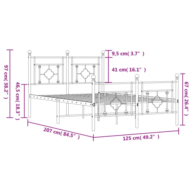 vidaXL Kovinski posteljni okvir z vzglavjem in vznožjem črn 120x200 cm