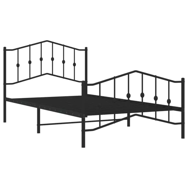 Če iščete trpežen posteljni okvir za svojo spalnico, je ta klasični posteljni okvir z elegantnim in brezčasnim dizajnom popolna izbira! Robustna kovinska konstrukcija: Okvir postelje je izdelan iz prašno barvanega jekla. Jeklo je izjemno trd in močan material, ki zagotavlja izjemno trdnost in stabilnost.Kovinske letvice in noge: Kovinski posteljni okvir je opremljen s kovinskimi letvami in sredinskimi nogami, ki ležišču nudijo nujno potrebno oporo in zračnost.Dodaten prostor za shranjevanje: Za vaše udobje ima postelja za goste pod seboj tudi dodaten prostor, da vaše škatle za shranjevanje ne bodo vidne.Funkcionalno vzglavje in podnožje: Vzglavje in podnožje posteljnega dna ohranjata ležišče na mestu. Poleg tega vzglavje zagotavlja odlično oporo hrbtu, ko sedite v postelji in berete ali gledate televizijo. Dobro je vedeti:Vzmetnica ni priložena tej postelji. Ponujamo različno izbiro ležišč. V naši trgovini si lahko ogledate ustrezne vzmetnice.Barva: ČrnaMaterial: JekloCelotne dimenzije: 207 x 112 x 98 cm (D x Š x V)Višina prostora pod posteljo: 26 cmPrimerna velikost vzmetnice: 107 x 203 cm (Š x D) (vzmetnica ni priložena)Potrebno sestavljanje: Da 373803