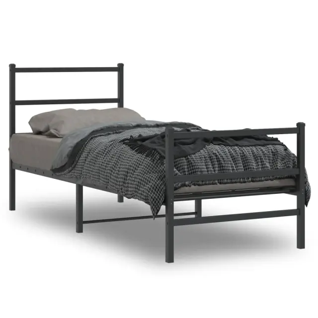 Če iščete trpežen posteljni okvir za svojo spalnico, je ta klasični posteljni okvir z elegantnim in brezčasnim dizajnom popolna izbira! Robustna kovinska konstrukcija: Okvir postelje je izdelan iz prašno barvanega jekla. Jeklo je izjemno trd in močan material, ki zagotavlja izjemno trdnost in stabilnost.Kovinske letvice in noge: Kovinski posteljni okvir je opremljen s kovinskimi letvami in sredinskimi nogami, ki ležišču nudijo nujno potrebno oporo in zračnost.Dodaten prostor za shranjevanje: Za vaše udobje ima postelja za goste pod seboj tudi dodaten prostor, da vaše škatle za shranjevanje ne bodo vidne.Funkcionalno vzglavje in podnožje: Vzglavje in podnožje posteljnega dna ohranjata ležišče na mestu. Poleg tega vzglavje zagotavlja odlično oporo hrbtu, ko sedite v postelji in berete ali gledate televizijo. Dobro je vedeti:Vzmetnica ni priložena tej postelji. Ponujamo različno izbiro ležišč. V naši trgovini si lahko ogledate ustrezne vzmetnice.Barva: ČrnaMaterial: JekloCelotne dimenzije: 207 x 85 x 90 cm (D x Š x V)Višina prostora pod posteljo: 26 cmVelikost primerne vzmetnice: 80 x 200 cm (Š x D) (vzmetnica ni priložena)Potrebno sestavljanje: Da 355374