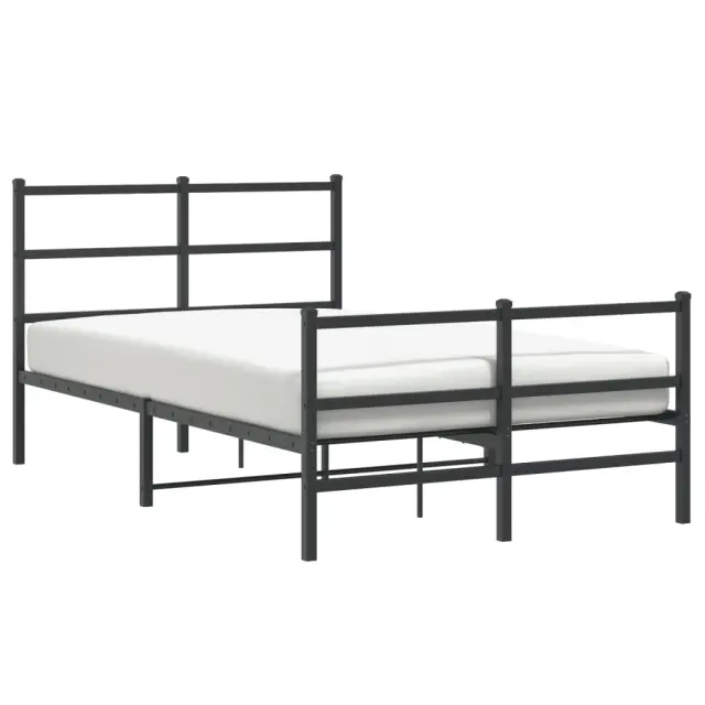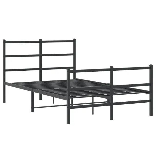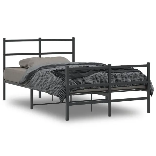 Če iščete trpežen posteljni okvir za svojo spalnico, je ta klasični posteljni okvir z elegantnim in brezčasnim dizajnom popolna izbira! Robustna kovinska konstrukcija: Okvir postelje je izdelan iz prašno barvanega jekla. Jeklo je izjemno trd in močan material, ki zagotavlja izjemno trdnost in stabilnost.Kovinske letvice in noge: Kovinski posteljni okvir je opremljen s kovinskimi letvami in sredinskimi nogami, ki ležišču nudijo nujno potrebno oporo in zračnost.Dodaten prostor za shranjevanje: Za vaše udobje ima postelja za goste pod seboj tudi dodaten prostor, da vaše škatle za shranjevanje ne bodo vidne.Funkcionalno vzglavje in podnožje: Vzglavje in podnožje posteljnega dna ohranjata ležišče na mestu. Poleg tega vzglavje zagotavlja odlično oporo hrbtu, ko sedite v postelji in berete ali gledate televizijo. Dobro je vedeti:Vzmetnica ni priložena tej postelji. Ponujamo različno izbiro ležišč. V naši trgovini si lahko ogledate ustrezne vzmetnice.Barva: ČrnaMaterial: JekloCelotne dimenzije: 207 x 125 x 90 cm (D x Š x V)Višina prostora pod posteljo: 26 cmVelikost primerne vzmetnice: 120 x 200 cm (Š x D) (vzmetnica ni priložena)Potrebno sestavljanje: Da 355381