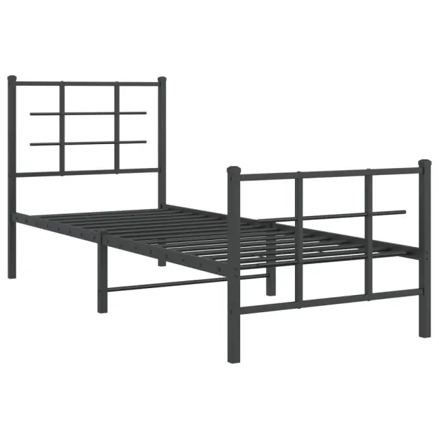 Če iščete trpežen posteljni okvir za svojo spalnico, je ta klasični posteljni okvir z elegantnim in brezčasnim dizajnom popolna izbira! Robustna kovinska konstrukcija: Okvir postelje je izdelan iz prašno barvanega jekla. Jeklo je izjemno trd in močan material, ki zagotavlja izjemno trdnost in stabilnost.Kovinske letvice in noge: Kovinski posteljni okvir je opremljen s kovinskimi letvami in sredinskimi nogami, ki ležišču nudijo nujno potrebno oporo in zračnost.Dodaten prostor za shranjevanje: Za vaše udobje ima postelja za goste pod seboj tudi dodaten prostor, da vaše škatle za shranjevanje ne bodo vidne.Funkcionalno vzglavje in podnožje: Vzglavje in podnožje posteljnega dna ohranjata ležišče na mestu. Poleg tega vzglavje zagotavlja odlično oporo hrbtu, ko sedite v postelji in berete ali gledate televizijo. Dobro je vedeti:Vzmetnica ni priložena tej postelji. Ponujamo različno izbiro ležišč. V naši trgovini si lahko ogledate ustrezne vzmetnice.Barva: ČrnaMaterial: JekloCelotne dimenzije: 196 x 80 x 90 cm (D x Š x V)Višina prostora pod posteljo: 26 cmVelikost primerne vzmetnice: 75 x 190 cm (Š x D) (vzmetnica ni priložena)Potrebno sestavljanje: Da 355569