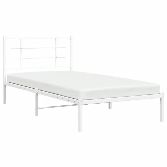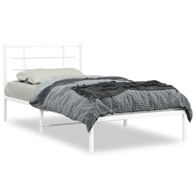 vidaXL Kovinski posteljni okvir z vzglavjem bel 107x203 cm
