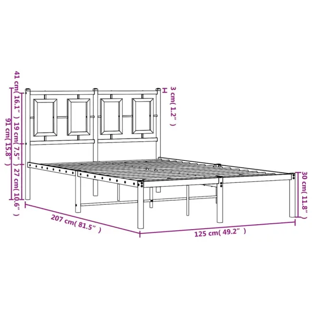 Če iščete trpežen posteljni okvir za svojo spalnico, je ta klasični posteljni okvir z elegantnim in brezčasnim dizajnom popolna izbira! Robustna kovinska konstrukcija: Okvir postelje je izdelan iz prašno barvanega jekla. Jeklo je izjemno trd in močan material, ki zagotavlja izjemno trdnost in stabilnost.Kovinske letvice in noge: Kovinski posteljni okvir je opremljen s kovinskimi letvami in sredinskimi nogami, ki ležišču nudijo nujno potrebno oporo in zračnost.Dodaten prostor za shranjevanje: Za vaše udobje ima postelja za goste pod seboj tudi dodaten prostor, da vaše škatle za shranjevanje ne bodo vidne.Odlična opora: Vzglavje zagotavlja odlično oporo hrbtu, ko sedite v postelji in berete ali gledate televizijo. Dobro je vedeti:Vzmetnica ni priložena tej postelji. Ponujamo različno izbiro ležišč. V naši trgovini si lahko ogledate ustrezne vzmetnice.Barva: BelaMaterial: JekloCelotne dimenzije: 207 x 125 x 91 cm (D x Š x V)Višina prostora pod posteljo: 26 cmVelikost primerne vzmetnice: 120 x 200 cm (Š x D) (vzmetnica ni priložena)Potrebno sestavljanje: Da 374288