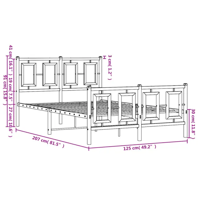 Če iščete trpežen posteljni okvir za svojo spalnico, je ta klasični posteljni okvir z elegantnim in brezčasnim dizajnom popolna izbira! Robustna kovinska konstrukcija: Okvir postelje je izdelan iz prašno barvanega jekla. Jeklo je izjemno trd in močan material, ki zagotavlja izjemno trdnost in stabilnost.Kovinske letvice in noge: Kovinski posteljni okvir je opremljen s kovinskimi letvami in sredinskimi nogami, ki ležišču nudijo nujno potrebno oporo in zračnost.Dodaten prostor za shranjevanje: Za vaše udobje ima postelja za goste pod seboj tudi dodaten prostor, da vaše škatle za shranjevanje ne bodo vidne.Funkcionalno vzglavje in podnožje: Vzglavje in podnožje posteljnega dna ohranjata ležišče na mestu. Poleg tega vzglavje zagotavlja odlično oporo hrbtu, ko sedite v postelji in berete ali gledate televizijo. Dobro je vedeti:Vzmetnica ni priložena tej postelji. Ponujamo različno izbiro ležišč. V naši trgovini si lahko ogledate ustrezne vzmetnice.Barva: BelaMaterial: JekloCelotne dimenzije: 207 x 125 x 91 cm (D x Š x V)Višina prostora pod posteljo: 26 cmVelikost primerne vzmetnice: 120 x 200 cm (Š x D) (vzmetnica ni priložena)Potrebno sestavljanje: Da 374306