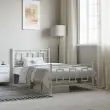 Če iščete trpežen posteljni okvir za svojo spalnico, je ta klasični posteljni okvir z elegantnim in brezčasnim dizajnom popolna izbira! Robustna kovinska konstrukcija: Okvir postelje je izdelan iz prašno barvanega jekla. Jeklo je izjemno trd in močan material, ki zagotavlja izjemno trdnost in stabilnost.Kovinske letvice in noge: Kovinski posteljni okvir je opremljen s kovinskimi letvami in sredinskimi nogami, ki ležišču nudijo nujno potrebno oporo in zračnost.Dodaten prostor za shranjevanje: Za vaše udobje ima postelja za goste pod seboj tudi dodaten prostor, da vaše škatle za shranjevanje ne bodo vidne.Funkcionalno vzglavje in podnožje: Vzglavje in podnožje posteljnega dna ohranjata ležišče na mestu. Poleg tega vzglavje zagotavlja odlično oporo hrbtu, ko sedite v postelji in berete ali gledate televizijo. Dobro je vedeti:Vzmetnica ni priložena tej postelji. Ponujamo različno izbiro ležišč. V naši trgovini si lahko ogledate ustrezne vzmetnice.Barva: BelaMaterial: JekloCelotne dimenzije: 196 x 105 x 91 cm (D x Š x V)Višina prostora pod posteljo: 26 cmVelikost primerne vzmetnice: 100 x 190 cm (Š x D) (vzmetnica ni priložena)Potrebno sestavljanje: Da 374302