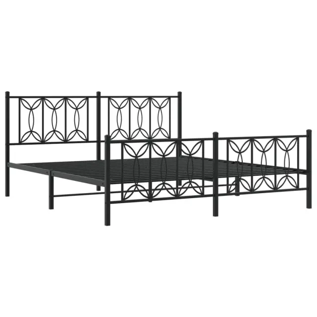 vidaXL Kovinski posteljni okvir z vzglavjem in vznožjem črn 183x213 cm
