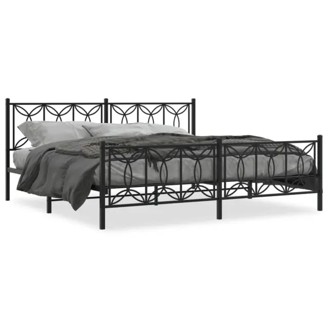 vidaXL Kovinski posteljni okvir z vzglavjem in vznožjem črn 193x203 cm