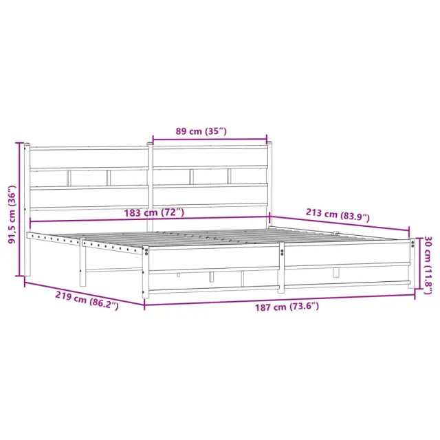Če iščete trpežen posteljni okvir za svojo spalnico, je ta klasični posteljni okvir z elegantnim in brezčasnim dizajnom popolna izbira! Stabilen in dolgotrajen okvir: Jeklo je močno, stabilno in trpežno, zato je idealna izbira za številne aplikacije, od proizvodnje pohištva do gradbeništva.Kovinske letvice in noge: Kovinski posteljni okvir je opremljen s kovinskimi letvami in sredinskimi nogami, ki ležišču nudijo nujno potrebno oporo in zračnost.Dodaten prostor za shranjevanje: Za vaše udobje ima postelja za goste pod seboj tudi dodaten prostor, da vaše škatle za shranjevanje ne bodo vidne.Vsestransko vzglavje: Ta posteljni okvir je opremljen z vzglavjem, ki zagotavlja odlično oporo hrbtu, ko sedite v postelji in berete ali gledate televizijo, hkrati pa služi tudi kot dekorativni element. Dobro je vedeti:Vzmetnica ni priložena tej postelji. Ponujamo različno izbiro ležišč. V naši trgovini si lahko ogledate ustrezne vzmetnice.Barva: Dimljeni hrastMaterial: Jeklo, inženirski lesCelotne dimenzije: 219 x 187 x 91,5 cm (D x Š x V)Velikost primerne vzmetnice: 183 x 213 cm (Š x D) (vzmetnica ni priložena)Potrebno sestavljanje: Da 3308487