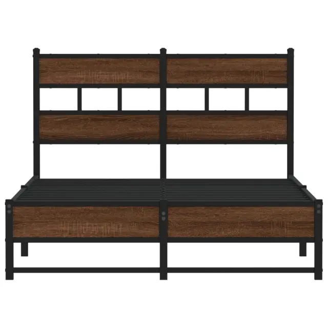 vidaXL Kovinski posteljni okvir brez vzmetnice rjavi hrast 120x200 cm
