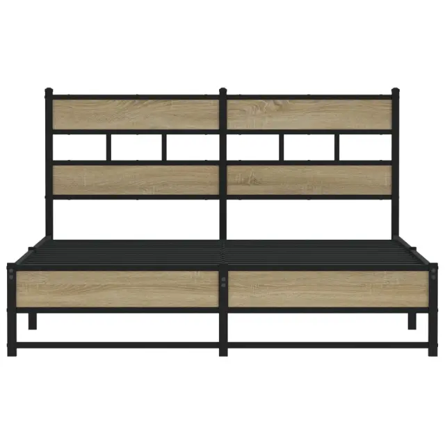 vidaXL Kovinski posteljni okvir brez vzmetnice sonoma hrast 135x190 cm