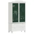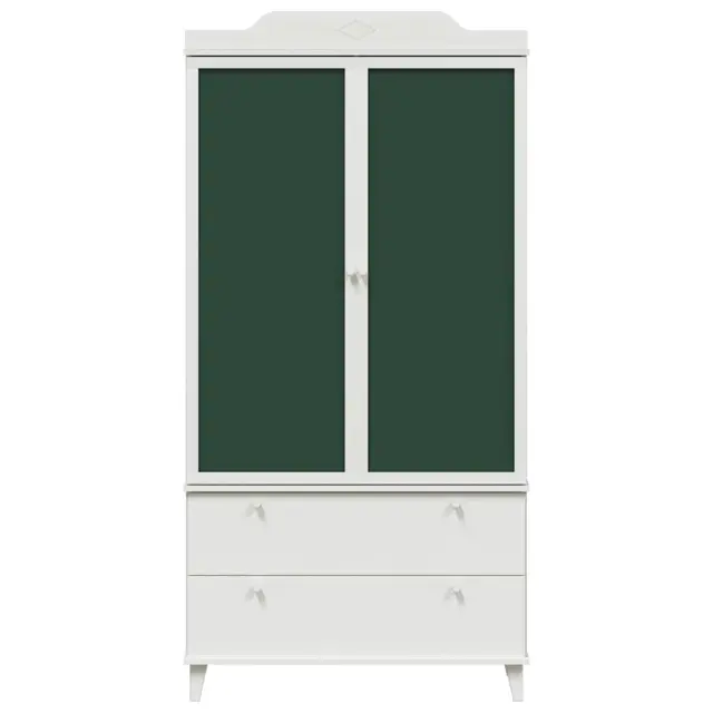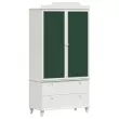 Ta moderna omara brezhibno združuje funkcionalnost z elegantnim dizajnom, zaradi česar je popolna izbira za otroško sobo ali katerikoli prostor, kjer potrebujejo dodatno shranjevanje. Ima edinstveno tablo za krede na vratih, ki vabi k ustvarjanju, pri čemer ohranja tudi urejen videz. Njena gladka, pravokotna oblika in barvna kombinacija zelenih vrat ter belega okvirja in nog se odlično podata k sodobnim sl stilom, kar nudi odlično rešitev za shranjevanje raznoraznih oblačil.